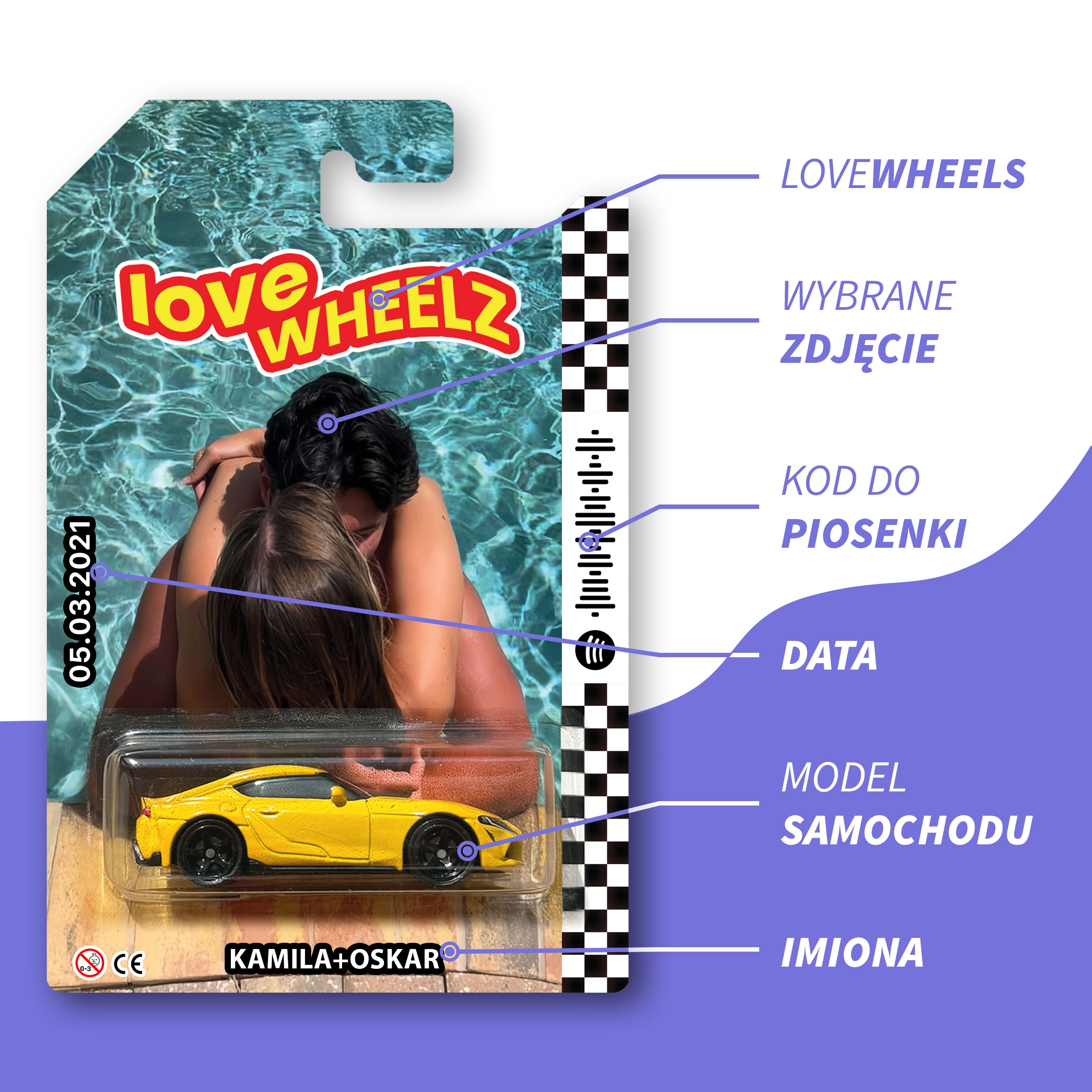 LoveWheels to idealny prezent dla każdego fana motoryzacji! Połącz to co kocha najbardziej razem tworząc unikalny upominek który będzie związany tylko z Wami. Dzięki wielu personalizowanym detalom takim jak: zdjęcie, imiona, data czy nawet piosenka będziesz w stanie na jednym pudełku uchwycić wiele ważnych wspomnień.